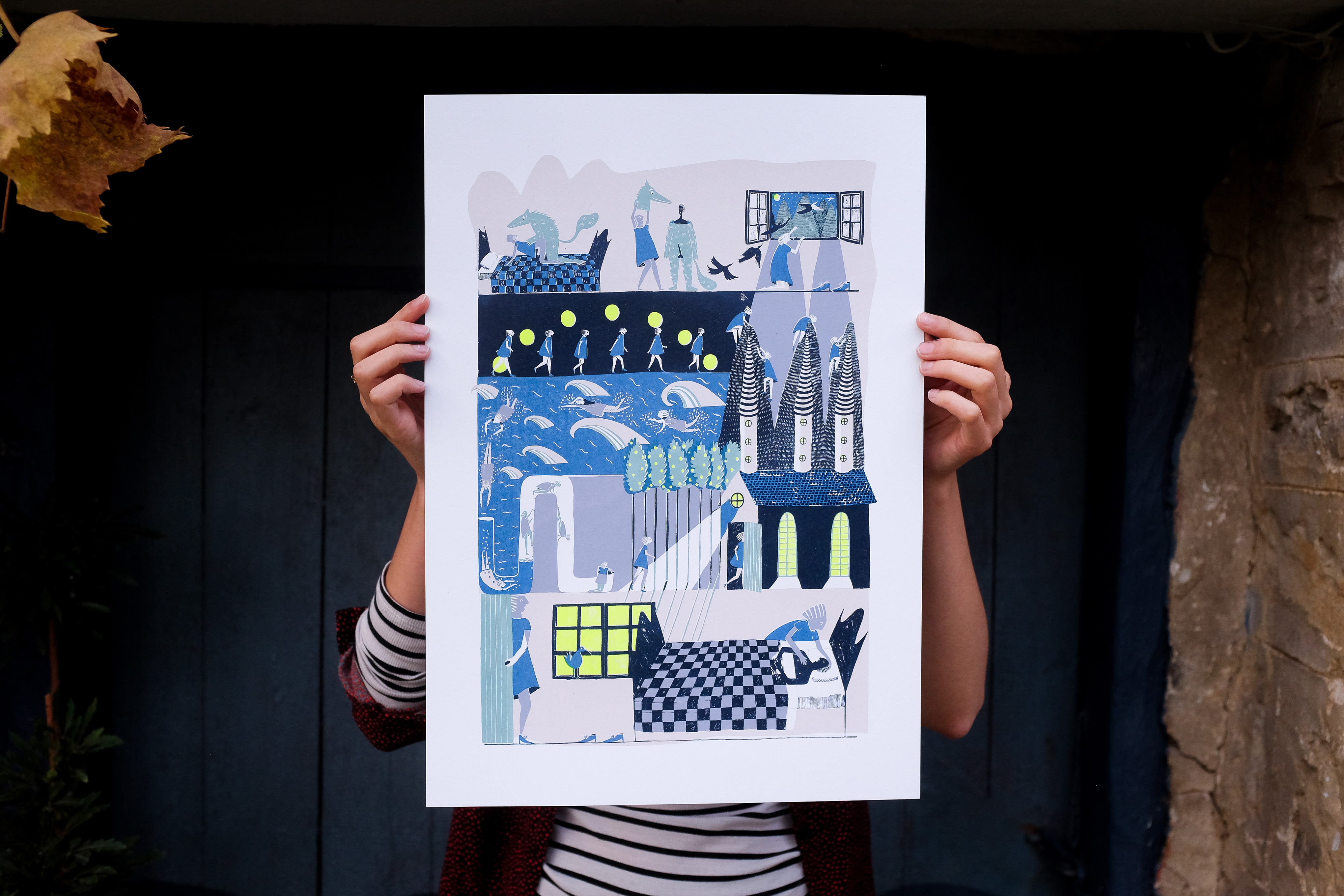 A series of black & white drawings, based on The Beauty and The Beast, was the starting point for a 10-day residency at NoPoint Atelier, in Bulgaria. The residency, based in the Bulgarian mountains, produced a riso-printed book + a limited edition 6-colour handmade silkscreen print.
